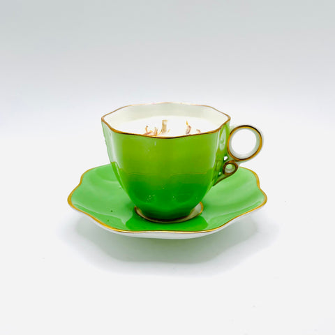 This stunning true green cup and saucer were made between 1891 and 1920 by famous English maker Coalport. Cup diameter 5cm.